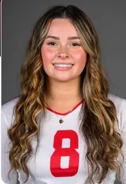 She was at a community college in Kansas last term. Now she's a two-year BMOC at two different schools - still playing volleyball as a junior and still majoring in business. We don't know why she straigteneed her curls for this picture, but she still finished second in a Joplin City League contest. [Posted 2/21/26]
