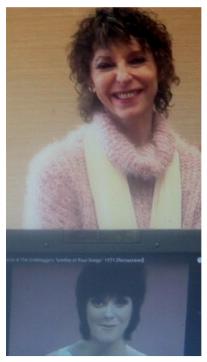 While other "Golddiggers" continue to perform on tour, Paula seems to prefer privacy. She still posts items on Facebook, but they're almost completely the posts of others. Yet she consented to a lengthy YouTube interview about her career in late 2017. Paula's current style shows little change - short and wavy, cut well back with a hint of bangs across her forehead. (Spoiler alert: it's never in danger during the clip.) This vidcap lets you compare 2017 and 1971 styles....