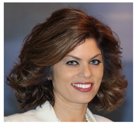 A Hair Fan found her at a TV station website, but she left television during 2015 to work at nearby Thomas More College. She took impressive medium-short hair with her - strong enough to top three former co-workers, then defeat longtime champ Becky Clark (Meyer) 8-3 (73%).