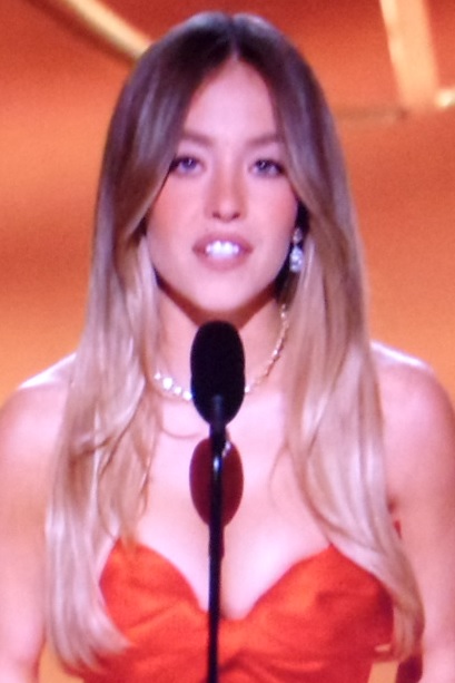 It could have been an unusual double play: a woman winning the prize for best hair at an awards show two weeks in a row. After taking your title at the MTV Video Music Awards in New York, actress Brittany Snow went to Hollywood and presented a Primetime Emmy Award. But that's NOT Snow pictured above. Thar's actress Sydney Sweeney - whose long hair and daring "curtain bangs" became your top choice, even though she did NOT wear the jeans which sparked a recent online controversy.