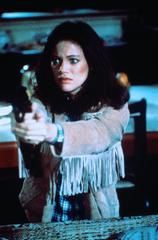But the good news is that her 1981 movie Deadly Blessing has emerged from obscurity, and is available on DVD from several web sites. We should note this movie was rated "R" when it was released. So if you want to zip past potentially objectionable items (even though her hair was great from start to finish, as in the photo above), go to the last ten minutes of the film. That's when the incredible clash happens -- and as you see it, ask yourself: how many Super-styles today could survive what Jensen faced there?