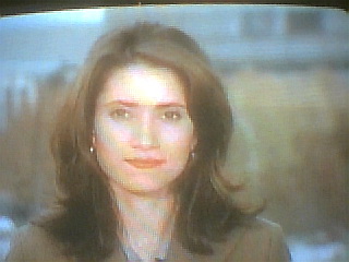 World News Tonight with a very full, very loose, brushed-forward style. But she's outside -- so is this