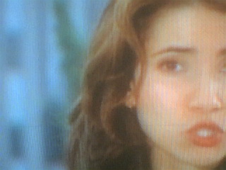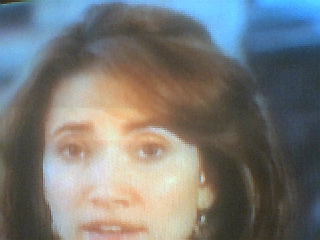 the face. She flip-curls the ends up here, and if she sprays the hair we really can't tell. Overall, very nice.