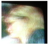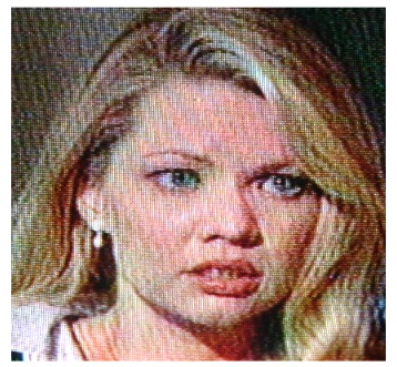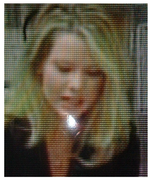 notice how close to the left eye her hair is. That strip almost