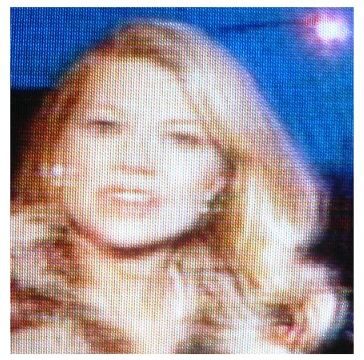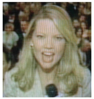 Johnny Carson. She's in a studio, with hair we can't recall seeing